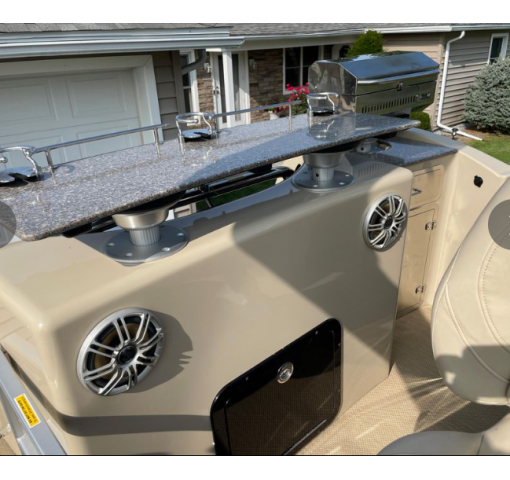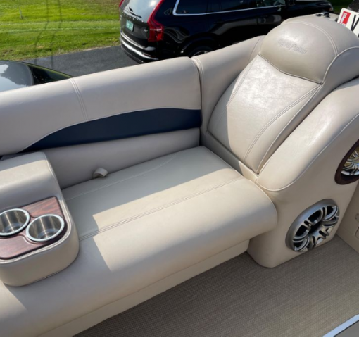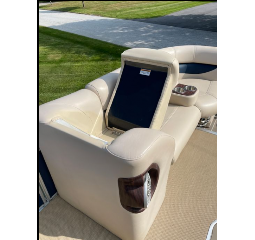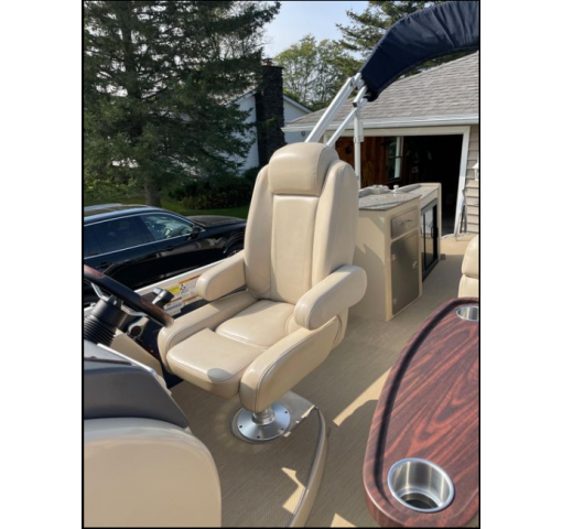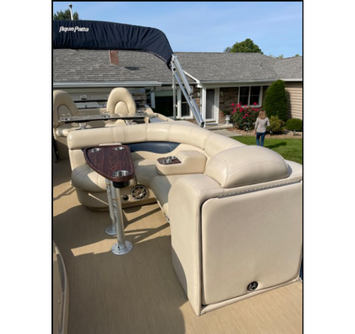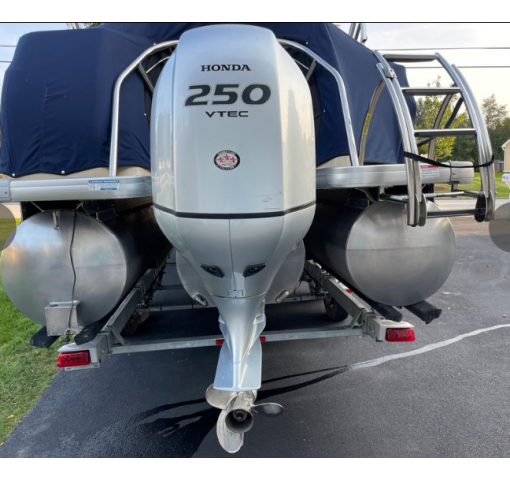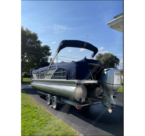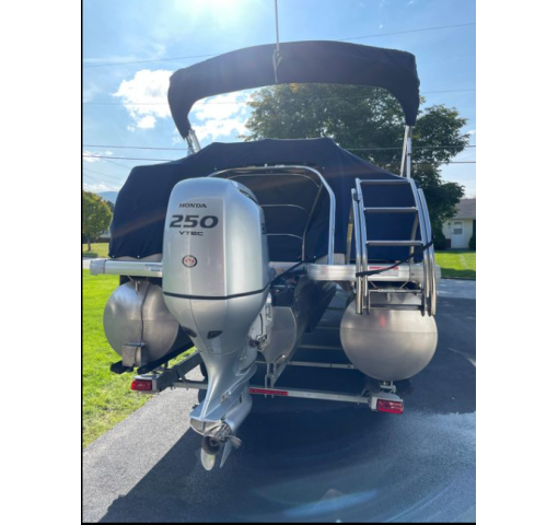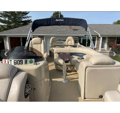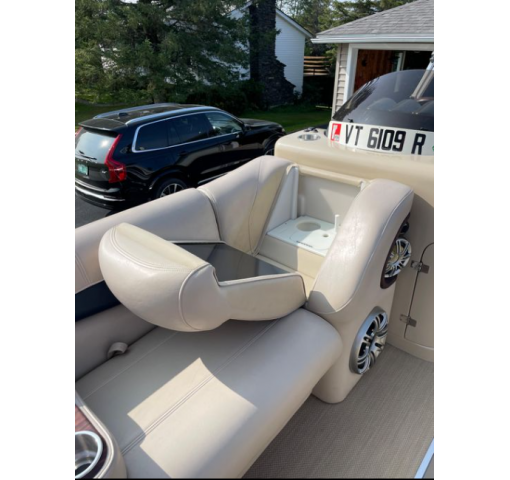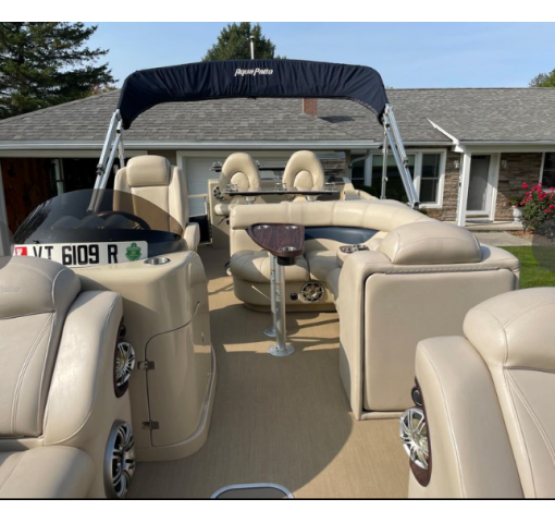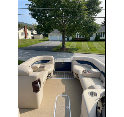 This is a pristine 2014 Godfrey Aqua Patio Entertainment Tri Toon that was bought new and serviced and stored at the selling marina. This boat has been in fresh water only on a small lake in Vermont. It has been summarized, winterized and serviced with all records available. This 27 foot boat can hold up to 18 people. And is a one owner boat. It has 2 sinks and 2 places where the grill can mount. There is a dressing room and plenty of storage on the boat. The captain's chair swivels, slides, fold down arms built in headrest and tilt steering wheel. Under water LED lighting. Depth/ X4 Pro Fish Finder. Under seat mood lights. There is an upgraded stereo/speaker system with SiriusXM satellite. New Sunbrella canvas cover in 2022. Sea grass flooring upgrade. Wine chiller, bar seating and much more amenities. A must see.