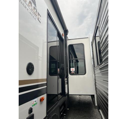 Get ready for your next adventure with this 2022 Forest River Cedar Creek Cottage 40CBAR! This luxury park model is 41.5 feet in length and features a charming floor plan that can comfortably accommodate up to four. It has been outfitted with three power retractable slide-outs, one 18-foot power retractable awning, as well as self-leveling jacks both front and rear. This impressive RV has been very well maintained with minimal use, which has enabled its excellent condition!