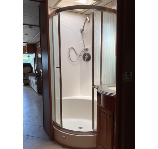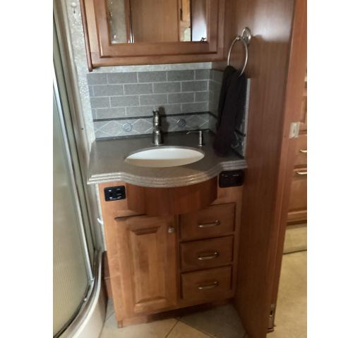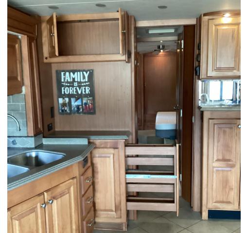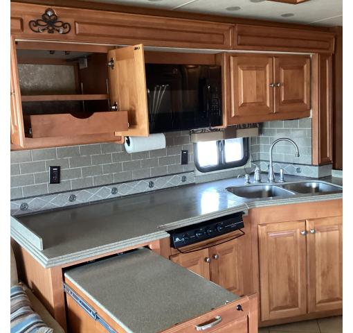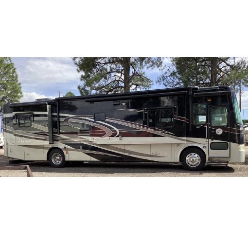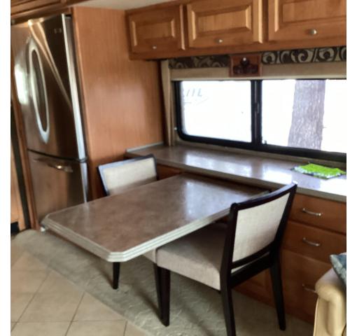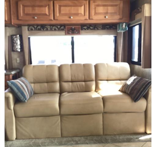 Perfect for Snowbirds, full timers, or family travel.....Excellent condition., tons of storage (inside & basement), new mattress, new toilet, captain chairs and dash in great condition as have been covered, well maintained, tires 2 years old, 4 TVs (one not mounted) with DVD and surround sound. Outdoor shower, outdoor TV. Additional options added include spotlight on roof, satellite extender, in-dash stereo/GPS, cloth sofa bed, washer/dryer, central vacuum, residential stainless-steel refrigerator. Road Master hitch (towing capacity 10,0000). Side and back cameras (cameras move as blinkers are on). Heated side mirrors. Ceiling fan in bedroom. 2 additional exhaust fans. Automatic awning with wind control. Retractable awning over door. Manual awnings over three large windows. Day/night shades. Front shades are electronic. New compressor in front AC. Very easy to drive and tow.