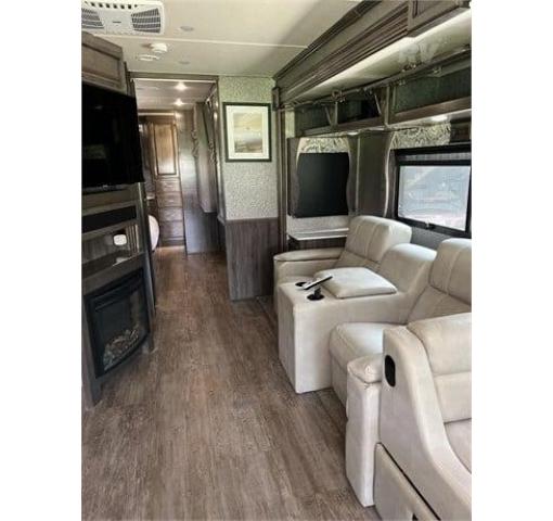 Get ready to make this 2018 Fleetwood Bounder your next home away from home. It comes equipped with options and features that are perfect for anyone who likes to live life outdoors. High lights include Non smoking and well cared for. In motion satellite, wired for DirecTV and Dish, King Jack HDTV directional antenna and signal meter. 4 tv's: Samsung Smart TV in living room, Amazon Fire TV in bedroom, Insigna tv's above drop down bed and outside. Apple Car Play system installed. Automatic leveling jacks, cruse control, cameras in heated mirrors and back of motor coach, 5500 watt Onan generator, automatic retractable power cord, 2 year old batteries, All in excellent working order. Bedroom has a comfortable king size bed and drop down bed has a new $700 mattress. Theater seats plus dinette table, swivel captain seats with extra portable table. Fireplace, microwave/convection oven, stove with 3 burners, double stainless steel sink, automatic front window shades, residential refrigerator with ice maker, hardwood floors, passenger side pull out computer table, 1/2 bath with lots of storage. Bedroom: king bed, tv, space for washer/dryer combo, dresser with 6 drawers, closet for hanging clothes, big under bed storage, cabinets over the bed, and more drawers under the washer/dryer closet and hanging clothes closet. Bathroom: very large shower with built in seat, folding doors and upgraded shower head, floor to ceiling cabinets, large sink and cabinet top, 2 large medicine cabinets, storage under the sink, toilet. The coach has hardwood floors through out and the cabinets are a beautiful shad of grey. Outside, is large storage under the coach. Plenty of room for tables, beach chairs and all tailgating equipment.