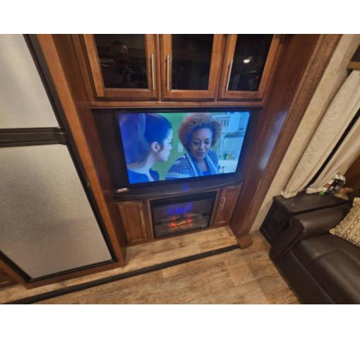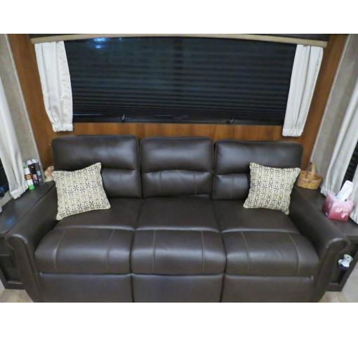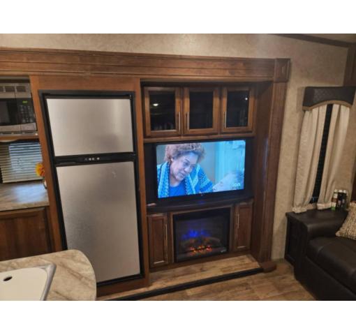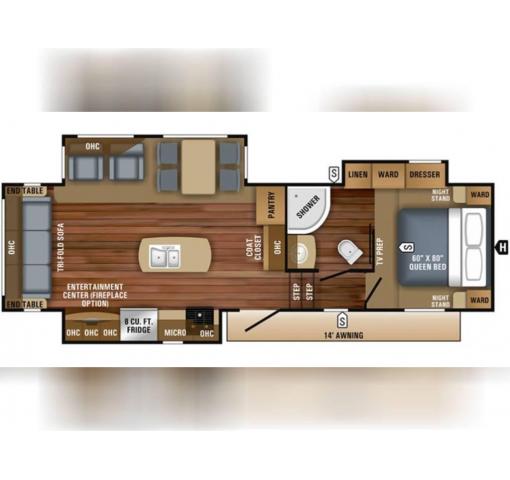 Come see just how fun and easy camping can be with your family when you choose to camp with this triple slide out Eagle HT 28.5RSTS fifth wheel. In the rear living area you will find a tri-fold sofa plus two end tables. Within the slideout along the roadside there are two theater seats and across the room you will find an entertainment center with a 39" HDTV plus a fireplace. The island features a double sink plus extra counter space which is ideal for meal prep or clean up. The bedroom slide out has a window, dresser, wardrobe, and linen closet. Across the room there is another window which allows for cross-ventilation plus plenty of natural light. In the evening you will want to visit with family and friends while relaxing under the 14' electric awning with LED lights.For any camping trip you will want an Eagle HT fifth wheel by Jayco. Along the exterior there is a high-gloss, fiberglass front cap with built-in specialty LED lighting. Inside each model there are handcrafted Sugar Maple glazed drawers. Throughout each model there is Shaw residential carpet with a sound dampening carpet pad plus IVC Trekk wood-plank vinyl flooring. The industry exclusive HELIX cooling system is an added bonus with the Jayco-exclusive insulated duct design, directional and closeable A/C vents, larger return air vents, and the exterior-mounted 15,000-BTU Whisper Quiet A/C unit. The Customer Value Package includes under-bed storage, an electric patio awning with integrated LED lights, MOR/ryde CRE/3000 rubberized suspension for a smoother ride, a rain proof EZ Breeze bathroom power vent, an industry first Go Power rooftop and ground solar prep, and so much more!