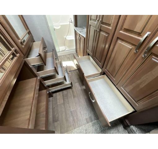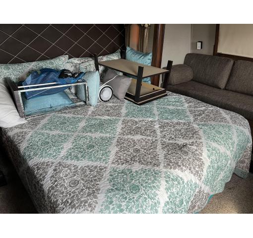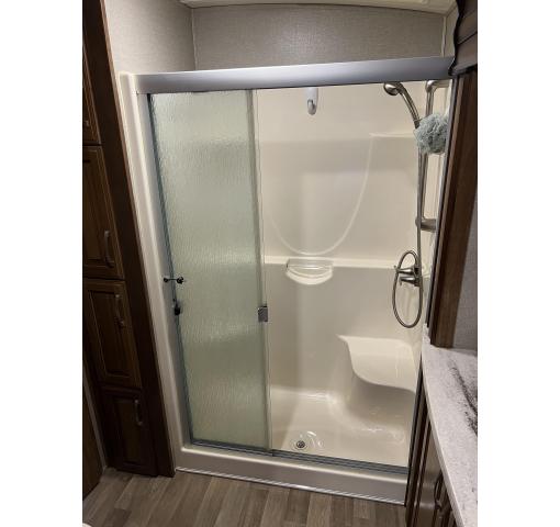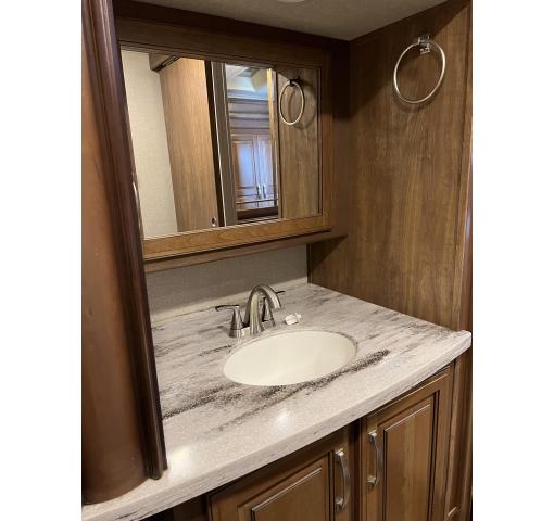 Unit is like new, roomy and comfortable, taken out less than 10 times. The Bathroom has a coat closet, shower w/seat, toilet, and sink with medicine cabinet walk in closet that connects the bathroom and the bedroom with plenty of dresser drawers. This RV has never been used for full time living and has been lightly used on road trips. The owner installed a Lifetime Roof using Lifetime RV Roof, San Antonio (www.sprayonrvroof.com). In February a full service has been completed by Camping World, New Braunfels, and it has not been used since. Everything is working up to factory specs.