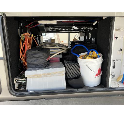 The RV will be sold with many accessories, including crockery, cutlery, floor mats, kingpin stablizer, hoses etc. It is ready to take on the road!