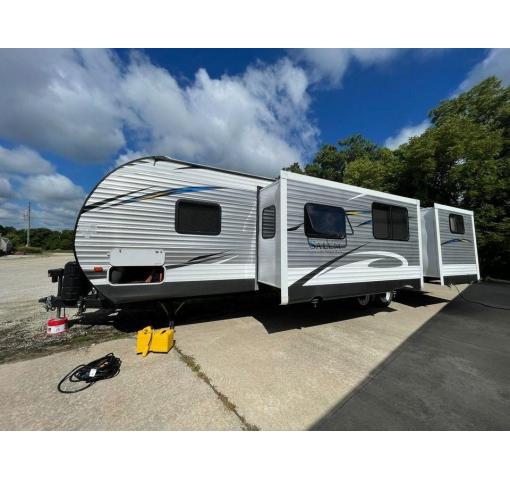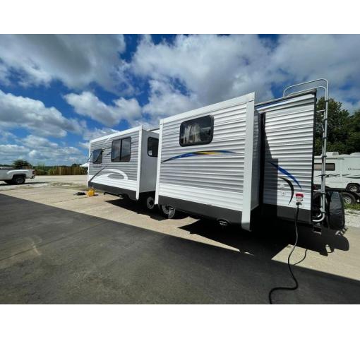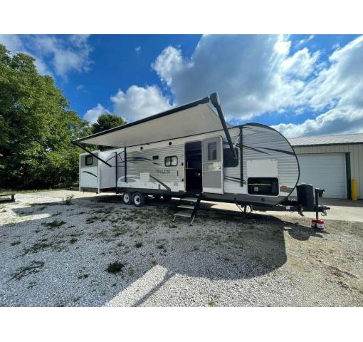 Get ready for your next adventure with this 2019 Forest River Salem 31KQBTS Travel Trailer RV! This luxury Travel Trailer is 36.5 feet in length and features a charming floor plan that can comfortably accommodate up to eight. It has been outfitted with three power retractable slide-outs, one power retractable awning, as well as self-leveling jacks both front and rear. This impressive Travel Trailer has been very well maintained with minimal use, which has enabled it's like new condition!