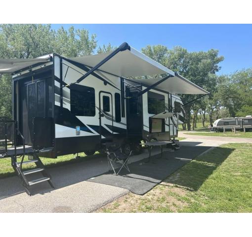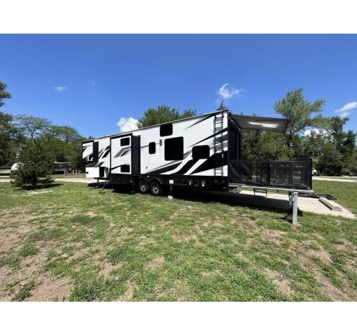 Get ready for your next adventure with this 2021 Dutchmen Voltage Fifth Wheel Trailer! This luxury fifth wheel is 38.92 feet in length and features a charming floor plan that can comfortably accommodate up to seven. It has been outfitted with three power retractable slide-out, one power retractable awning, as well as self-leveling jacks both front and rear. This impressive Fifth Wheel Trailer has been very well maintained with minimal use, which has enabled its excellent condition!