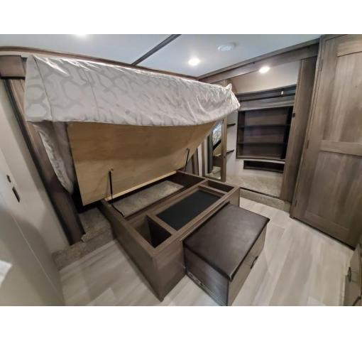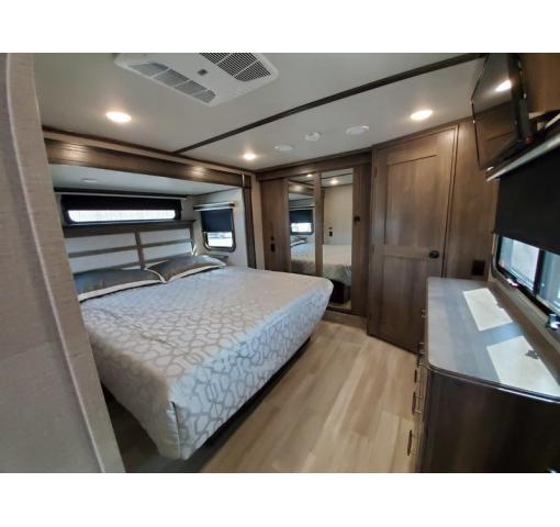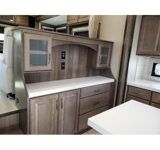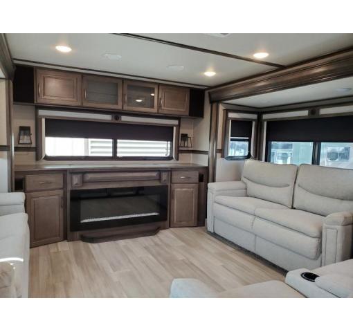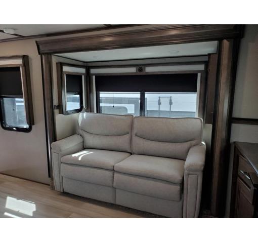Perfect for full-timers or seasonal travelers, this model boasts one of the largest and most functional interiors available, featuring a spacious living room, a chef’s kitchen with a center island, and a true residential-style king bedroom.