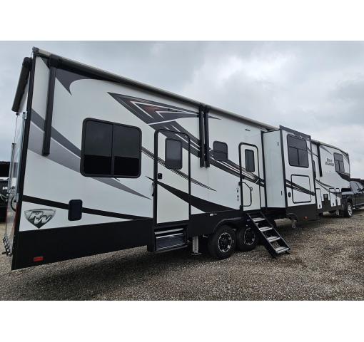 Spread your wings and fly with this 2021 Heartland Road Warrior 430 RW Toy Hauler - Fifth Wheel is 43.83 feet in length and features a spacious floorplan. It is perfect for creating memorable experiences with loved ones and friends. This Toy Hauler - Fifth Wheel comes equipped with three slide-outs, three awnings and offers sleeping accommodations for up to seven. This Heartland will be making your traveling dreams come true for many years to come.
