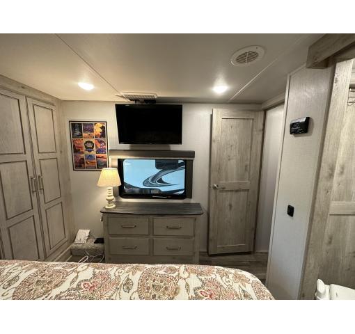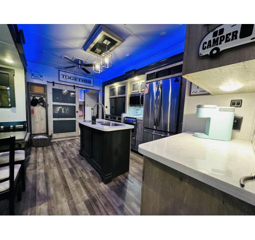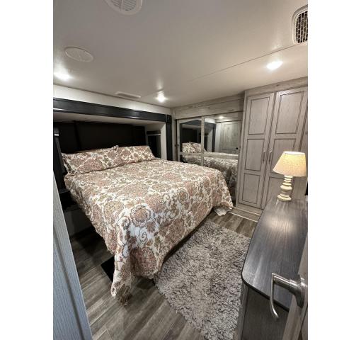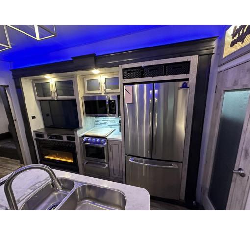 Step inside and experience the generous living space that the Avalanche 378BH offers. With multiple slide-outs, the interior opens up to create a roomy and comfortable environment for you and your loved ones. The master bedroom features a king-sized bed and ample storage. It's your private oasis on the road, ensuring a restful night's sleep. Perfect for families, the bunkhouse includes additional sleeping space and entertainment options. Your kids will love having their own area to relax and play. The well-appointed kitchen boasts stainless steel appliances, Residential Refrigerator w/built in ice maker, solid surface countertops, and plenty of storage space. Cooking on the road has never been this enjoyable. Relax in the cozy living area with a fireplace and large HDTV. It's the perfect spot to unwind after a day of adventure. Extend your living space to the outdoors with an outdoor kitchen and entertainment center. Enjoy meals al fresco and gather around the campfire. With the Avalanche's insulation and climate control features, you can comfortably travel year-round, whether it's a summer road trip or a winter retreat. This Keystone has 4 New tires, Auto leveling with hydraulic slides, Dual Entry and always garage kept since new.