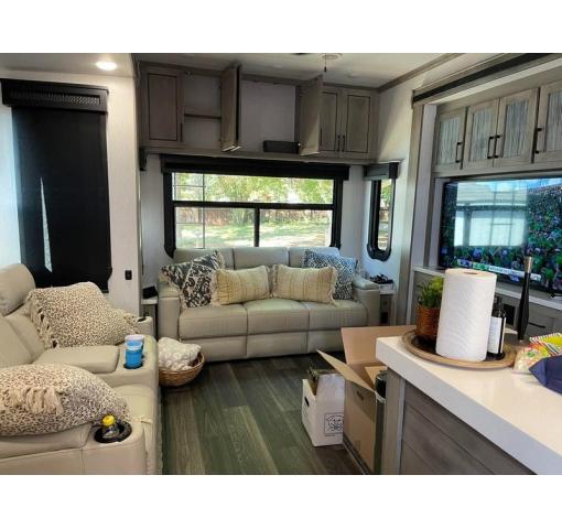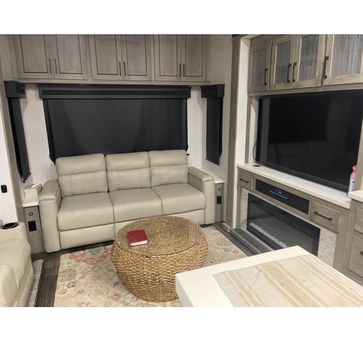 Looking for luxury on the road? This loaded and like-new 2022 Heartland Big Country 3851MO Fifth Wheel is your ticket to adventure! Despite a minor ding on the bottom area (courtesy of a small kid's bike), this unit shines with elegance and comfort. The ding is barely noticeable, ensuring your journey remains sleek and stylish.
