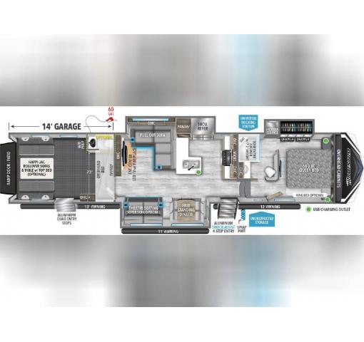 Get ready to make this 2023 Grand Design Momentum M-Class 395 MS Toy Hauler - Fifth Wheel your next home away from home because this unit is fully loaded with a plethora of comfort amenities.