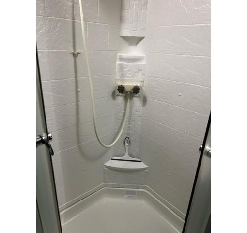Step inside and take a look around. The complete bath is conveniently located directly opposite the entry door. Here you will find a radius shower, a toilet, and a vanity sink. There are also two entry doors into the bathroom for easy access throughout, plus from inside the master bedroom as well.
