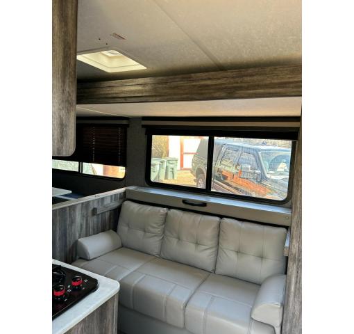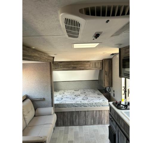 This trailer was virtually unused by the first owner before it was purchased by the current owner, He bought it just at the same time Covid hit and never had the chance to enjoy it with his family, he took it home and stored it covered. The current owner and his wife had been taking care of his mother until her passing six months ago, They thought they were ready to travel, They looked at a lot of trailers before they bought this trailer, but that plan went south, they brought it home and it has not moved since, and now they are selling, this beautiful trailer is in pristine condition there is no damage interior or exterior, all components work and are in excellent condition, all seals are intact, the slide out is very roomy and works effortlessly and there is plenty of storage for your gear. It feels like you are towing a feather. this unit is in showroom condition take advantage of this deal. Owner will throw in the still in the box 24" TV that he never installed.