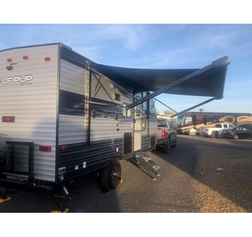 Get ready for your next adventure with this 2022 Forest River Cherokee Wolf Pup 16PF Travel Trailer! This luxury Travel Trailer is 22.33 feet in length and features a charming floor plan that can comfortably accommodate up to four. It has been outfitted with one power retractable slide-out, one power retractable awning, as well as self-leveling jacks both front and rear. This impressive RV has been very well maintained with minimal use, which has enabled its excellent condition!